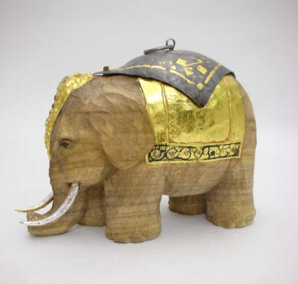 『インド象』木彫、鍛金、テンペラ(混合技法) 日本橋三越「うつわ展」